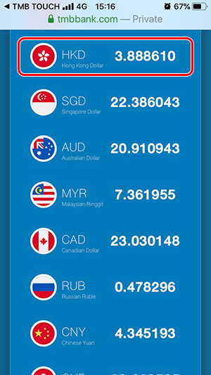 อัตราแลกเปลี่ยนของวันที่ 14 ตุลาคม 2562 (กรณีที่เราต้องการไปแลกเงิน ต้องดูที่ด้าน "Selling" หรือ "ราคาแลกซื้อ") อัตราแลกเปลี่ยนสกุลเงิน HKD ลดลงจากวันที่ 3 ตุลาคม เล็กน้อยค่ะ สำหรับของ TMB All Free อยู่ที่ 3.888071 ส่วนอัตราแลกเปลี่ยนของ Superrich อยู่ที่ 3.89 ค่ะ ซึ่งของ TMB All Free ลดลงมามากกว่า Superrich ที่ลดลงเช่นกันค่ะ สำหรับใครที่แลกเงินในวันที่ 14 ตุลาคม 2562 แลกกับ TMB All Free ประหยัดกว่า Superrich เล็กน้อยนะคะ