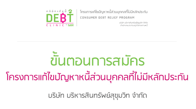 ย้ำ!! "โครงการคลินิกแก้หนี้" ไม่ได้ปล่อยเงินกู้ให้กับลูกค้าเพื่อเอาเงินมาปลดหนี้ แต่ให้โอกาสลูกหนี้ที่ผ่านเงื่อนไข หลักเกณฑ์ได้เข้ามาเจรจา พูดคุย พร้อมจัดตารางการผ่อนชำระหนี้ที่ผ่อนปรน โดยผ่อนชำระเฉพาะหนี้เงินต้นและให้แบ่งจ่ายตามความสามารถของลูกหนี้อย่างแท้จริง ส่วนดอกเบี้ยค้างชำระ เบี้ยปรับ และค่าธรรมเนียมที่เกิดขึ้นก่อนเข้าร่วมโครงการจะตั้งพักไว้และยกให้ เมื่อปฏิบัติได้ตามสัญญา นอกจากนี้ยังประหยัดเวลา ไม่ปวดหัวที่จะต้องไปติดต่อจ่ายชำระกับแบงค์หรือสถาบันการเงินเจ้าหนี้หลายๆ ที่ เพราะคลินิกแก้หนี้จะช่วยเป็นคนกลางในการเจรจาปรับโครงสร้างหนี้กับเจ้าหนี้ให้ลูกหนี้ก็เปลี่ยนมาชำระกับ SAM ที่เดียวแบบเบ็ดเสร็จที่จุดเดียว เรียกว่าเป็น One-Stop Service ที่สำคัญสุดเห็นจะเป็นเรื่องดอกเบี้ย ผู้ที่เข้าโครงการฯ ยังจ่ายดอกเบี้ยต่ำเพียงแค่ 4-7% ต่อปีเท่านั้น จากปกติที่เคยเสียดอกเบี้ยสูงถึง 20% ต่อปี ซึ่งลดลงจากเดิมมากและเบาภาระได้มากตามไปด้วย ส่วนระยะเวลาการผ่อนชำระ ก็ยาวนานถึง 10 ปี