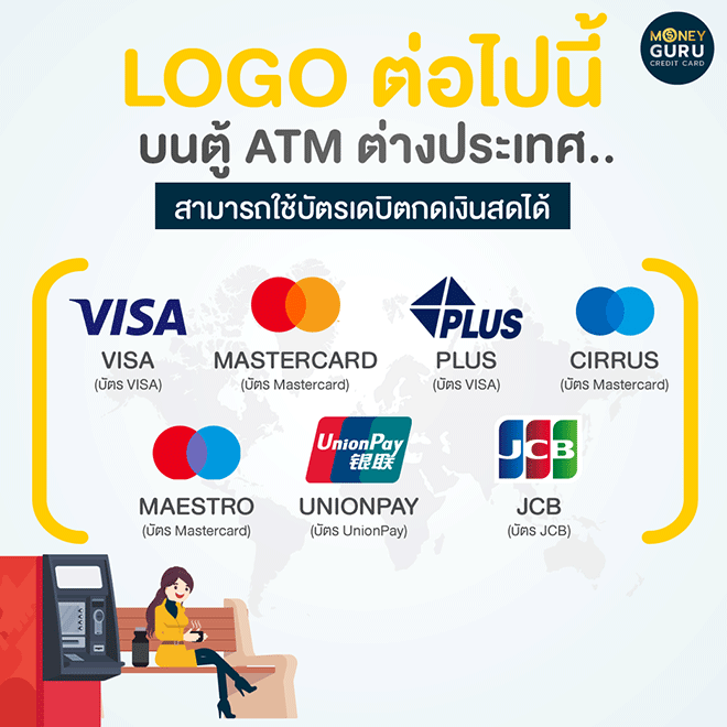 - อาจมีค่าธรรมเนียมที่เรียกเก็บเพิ่มเติมขึ้นอยู่กับธนาคารเจ้าของเครื่อง ATM แต่ละประเทศ