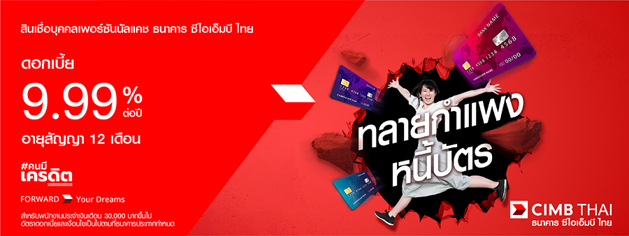 ตัวอย่าง โปรโมชั่น และอัตราดอกเบี้ยรวบหนี้บัตรเครดิตธนาคารซีไอเอ็มบี ไทย