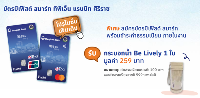 - บัตรบีเฟิสต์ สมาร์ท ทีพีเอ็น แรบบิท ศิริราช ทั้งให้ทั้งรับ จัดให้ในบัตรเดียว พิเศษ 2 ต่อ เมื่อสมัครบัตรพร้อมชำระค่าธรรมเนียมภายในงาน