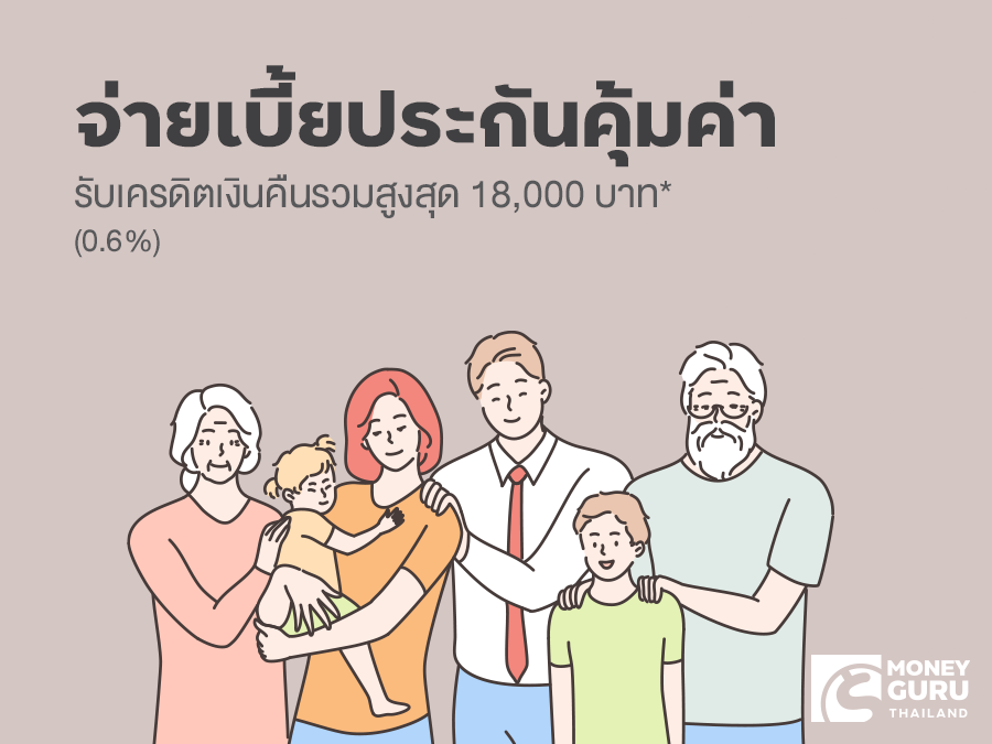 จ่ายเบี้ยประกันคุ้มค่า รับเครดิตเงินคืนรวมสูงสุด 18,000 บาท* (0.6%)