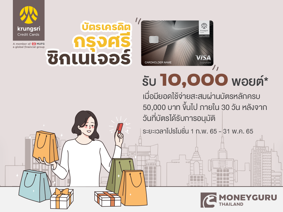 พิเศษสุดๆ...สมัครบัตรเครดิต กรุงศรี ซิกเนเจอร์ วันนี้ รับ 10,000 พอยต์* เมื่อมียอดใช้จ่ายสะสมผ่านบัตรหลักครบ 50,000 บาทขึ้นไป ภายใน 30 วัน หลังจากวันที่บัตรได้รับการอนุมัติ