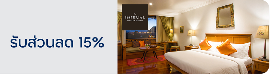 รับส่วนลดค่าห้องพักเพิ่ม 15% จากราคาโปรโมชันของโรงแรมและรีสอร์ตในเครือ ดิ อิมพีเรียล เมื่อจองผ่าน www.imperialhotels.com/ โดยระบุโค้ดส่วนลด TTB2022
