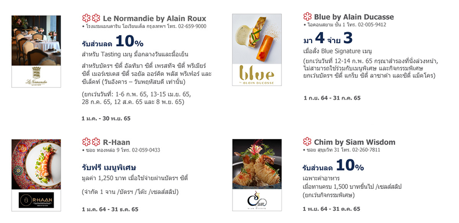 *เงื่อนไขเพิ่มเติมของแต่ละโปรโมชัน เป็นไปตามที่บริษัทฯ กำหนด โปรดสอบถามรายละเอียดเพิ่มเติมกับบริษัทบัตรเครดิต หรือร้านค้าที่ร่วมรายการอีกครั้ง