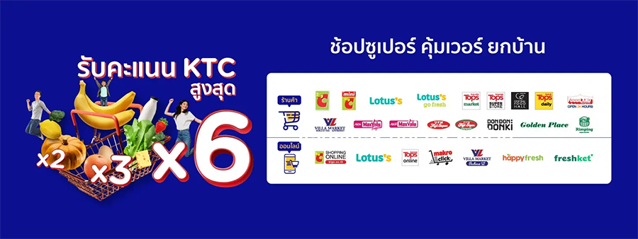 ช้อปซูเปอร์ คุ้มเวอร์ ยกบ้าน รับคะแนน KTC สูงสุด x6 เพียงลงทะเบียนเข้าร่วมรายการและสะสมยอดใช้จ่ายผ่านบัตรเครดิต KTC ครบ 2,000 บาท ต่อเดือน ต่อสมาชิก ต่อทุกซูเปอร์มาร์เก็ตที่ร่วมรายการรวมกัน (วันนี้ - 31 ก.ค. 65)