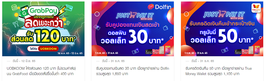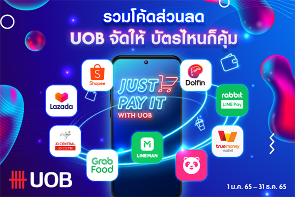 UOB จัดให้! ส่วนลดปังๆ จากแอปดังตลอดปี ให้คุณรับส่วนลด เครดิตเงินคืน เมื่อช้อปออนไลน์ สั่งอาหารเดลิเวอรี่ หรือใช้จ่ายผ่าน e-Wallet (1 ม.ค. 65 - 31 ธ.ค. 65)