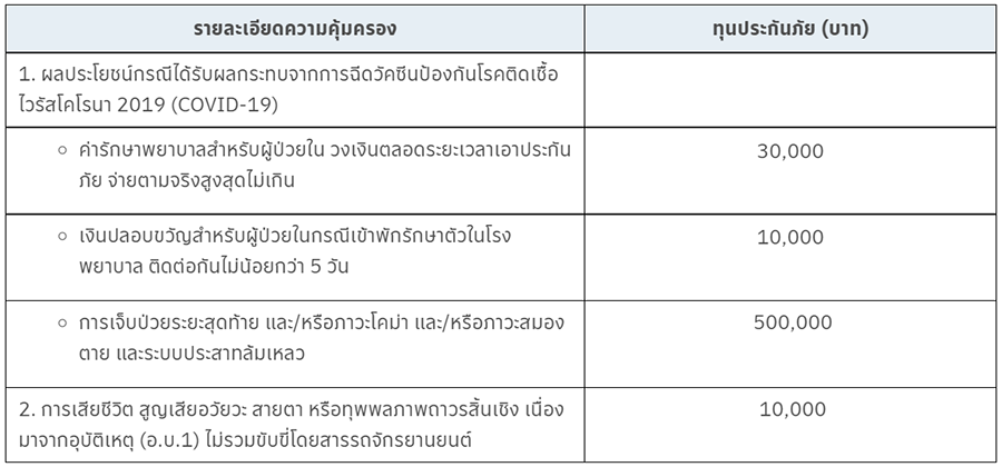 เงื่อนไขความคุ้มครอง และวงเงินความคุ้มครอง มีรายละเอียดดังต่อไปนี้