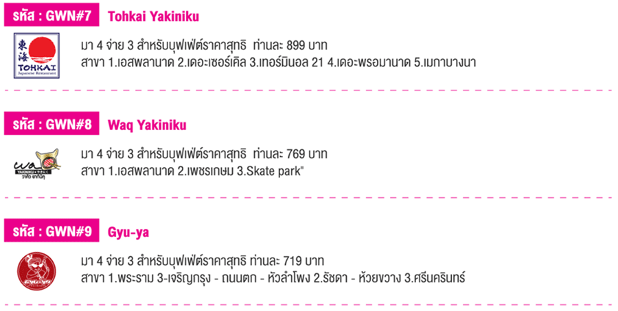 | Gyu-ya 9 | 9 | 719 บาท |