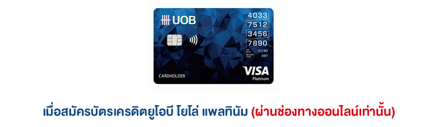 - การใช้จ่ายผ่านบัตรเครดิตยูโอบี โยโล่ แพลทินัม ไม่ร่วมรายการรับคะแนนสะสม UOB Reward Plus