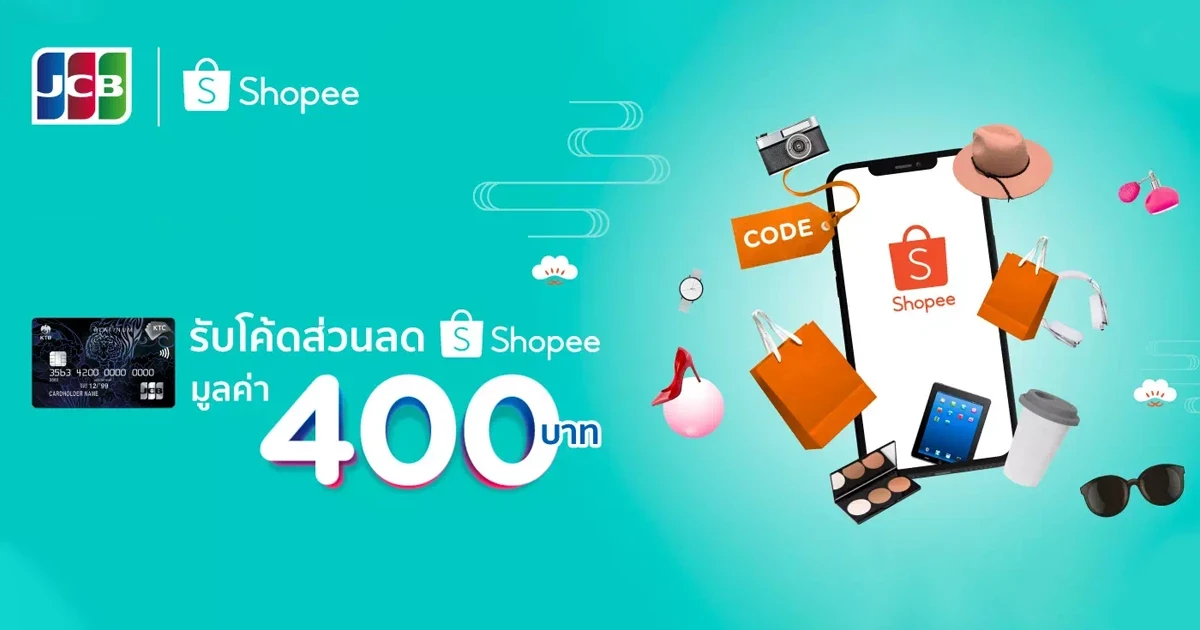 สมัครบัตรเครดิต KTC JCB PLATINUM รับโค้ดส่วนลด Shopee มูลค่ารวม 400 บาท สิทธิพิเศษสำหรับลูกค้าใหม่ที่สมัครบัตรเครดิต KTC JCB PLATINUM ทุกประเภทที่ได้รับอนุมัติภายในระยะเวลาที่กำหนด และมีการใช้จ่ายตั้งแต่ 3 รายการขึ้นไป ภายใน 30 วันนับจากวันที่อนุมัติบัตร