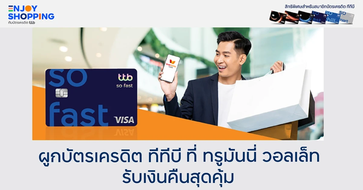 บัตรเครดิต ทีทีบี โซ ฟาสต์ เหมาะสำหรับนักปั่นคะแนน แลกรางวัลและประสบการณ์ชีวิต รับคะแนนเร็วทุกการใช้จ่าย ได้คะแนนเร็วก็แลกของรางวัลชีวิตได้เร็วกว่า ฟรีค่าธรรมเนียมทั้งแรกเข้าและรายปี