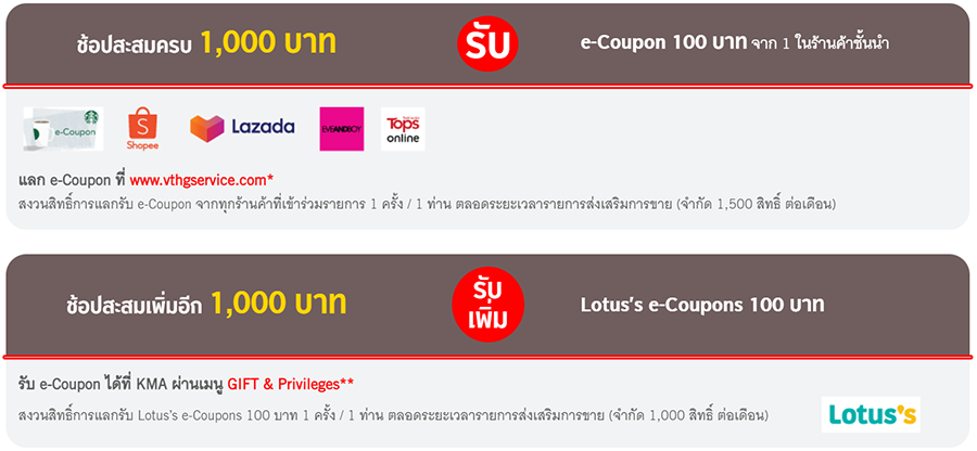 **เงื่อนไขการรับ Lotus’s e-Coupons ที่ KMA ผ่านเมนู GIFT & Privileges