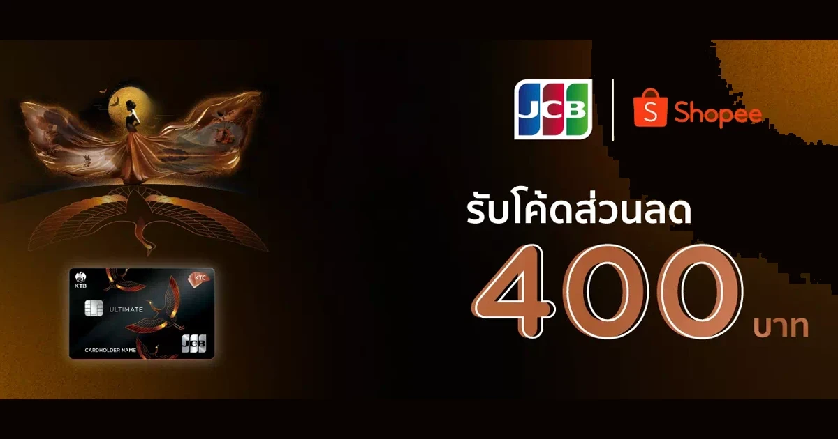 สมัครบัตรเครดิต KTC JCB ULTIMATE รับโค้ดส่วนลด Shopee มูลค่ารวม 400 บาท