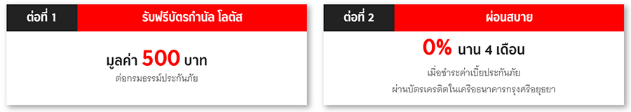 - สงวนสิทธิ์มอบบัตรกำนัล โลตัส มูลค่า 500 บาทต่อกรมธรรม์