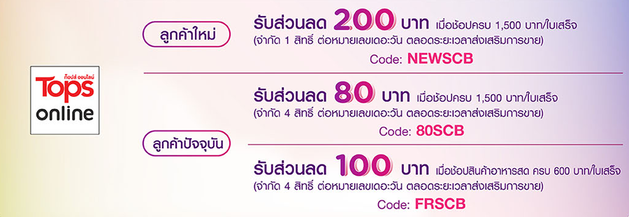 การใช้รหัสส่วนลด Tops Online (ผ่านท็อปส์ ออนไลน์เว็บไซต์: www.tops.co.th และแอปพลิเคชัน)