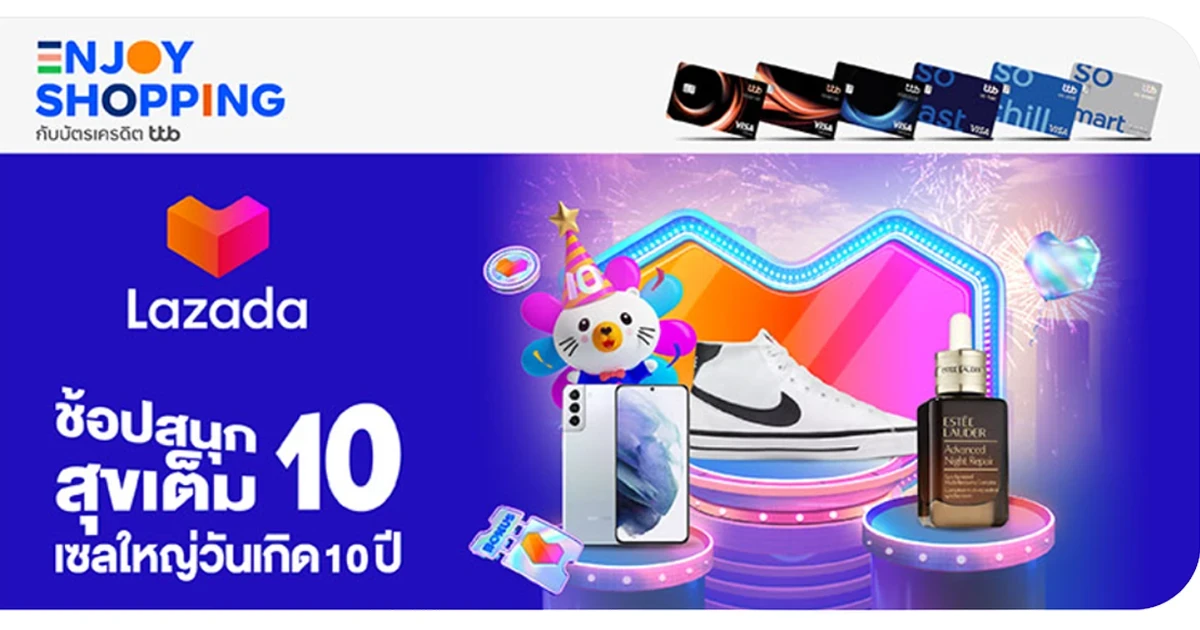 - ธนาคารเป็นเพียงผู้จัดโปรโมชันบัตรเครดิตร่วมกับลาซาด้า โดยไม่มีส่วนเกี่ยวข้องในการจำหน่าย หรือรับผิดชอบ ในสินค้า หรือการให้บริการแต่อย่างใด กรณีสินค้าหรือบริการมีปัญหาในทุกกรณี ติดต่อลาซาด้าโดยตรง