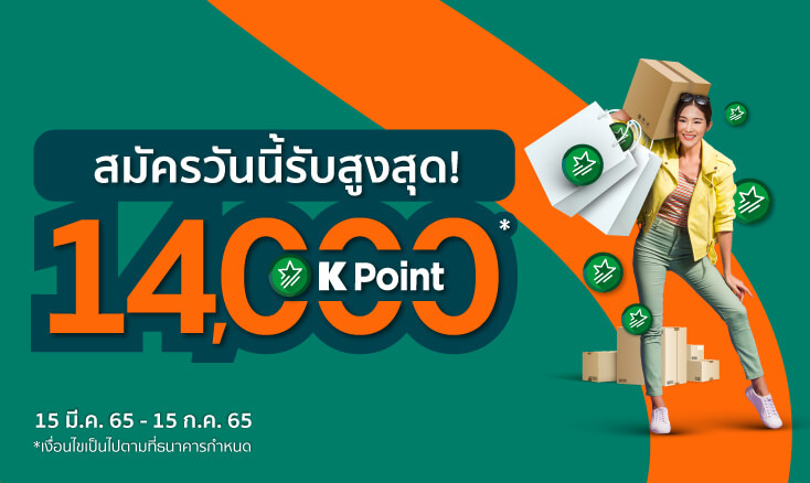 - คะแนนสะสม K Point ต่อที่ 1 จะมีอายุการใช้งานจนถึงวันที่ 31 ตุลาคม 2565 และ คะแนนสะสม K Point ต่อที่ 2 จะมีอายุการใช้งานจนถึงวันที่ 31 ธันวาคม 2565 หากลูกค้าไม่ได้ใช้คะแนนสะสม K Point ภายในระยะเวลาที่กำหนด ธนาคารจะถือว่าลูกค้าสละสิทธิ์ และธนาคารสงวนสิทธิ์ไม่ชดเชยในทุกกรณี