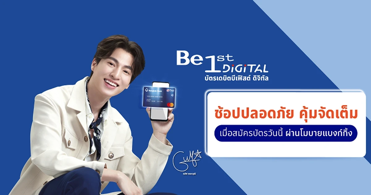 ปลอดภัย มั่นใจ ทุกการช้อปออนไลน์ รับโปรจัดเต็ม 3 ต่อ รวมมูลค่ากว่า 2,300 บาท เมื่อสมัครบัตรเดบิตบีเฟิสต์ ดิจิทัล ผ่านโมบายแบงก์กิ้ง จากธนาคารกรุงเทพ