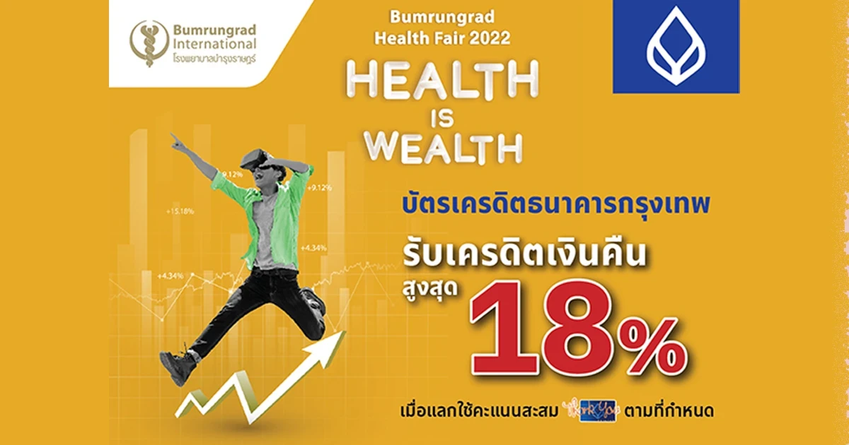 สิทธิพิเศษสำหรับบัตรเครดิตธนาคารกรุงเทพ รับเครดิตเงินคืนสูงสุด 18% ภายในงาน Bamrungrad Health Fair 2022