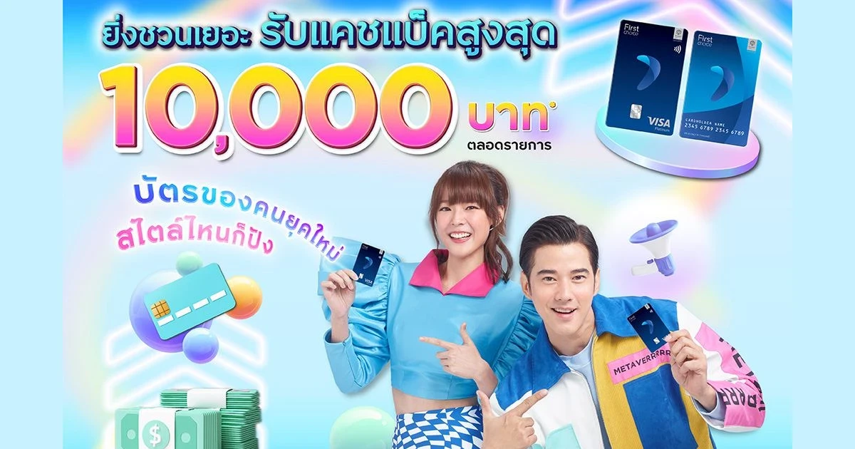 ชวนเพื่อนสมัครบัตรกรุงศรีเฟิร์สช้อยส์ และเพื่อนได้รับอนุมัติ พร้อมทั้งใช้จ่ายผ่านบัตรและทำตามเงื่อนไข รับเครดิตเงินคืนสูงสุด 10,000 บาท*