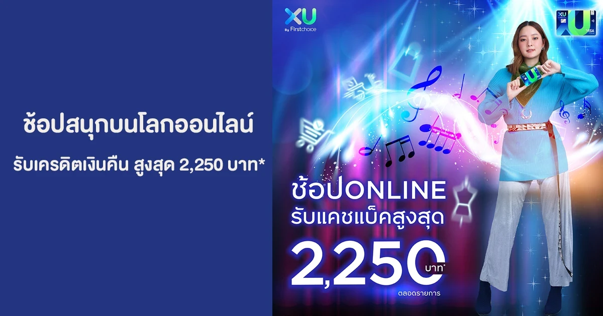 ช้อปปิ้งออนไลน์สุดคุ้ม รับเงินคืนง่ายๆ แม้ใช้จ่ายไม่ถึง 1,000 บาท / เซลล์สลิป แทบทุกหมวด หรือ สั่งอาหารเดลิเวอรี่ ด้วยบัตรเครดิต XU ผ่านแอปพลิเคชัน หรือ เว็บไซต์ รับเครดิตเงินคืนสูงสุด 2,250 บาท* พร้อมเช็คเงินคืนได้ทันที บนแอป UCHOOSE