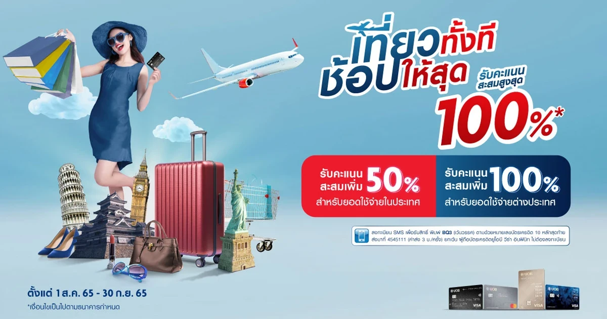 เที่ยวทั้งที ช้อปให้สุดกับบัตรเครดิตยูโอบี รับคะแนนสะสมสูงสุด 100%*