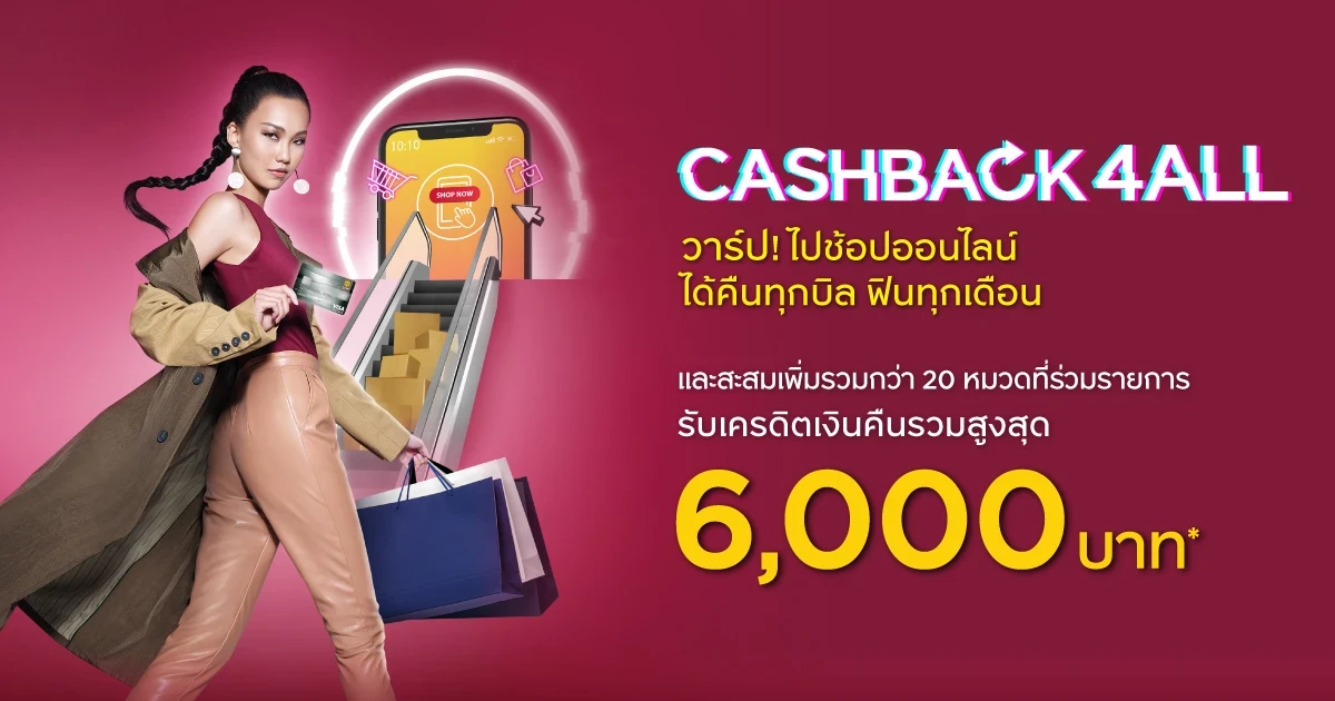 - สงวนสิทธิ์การให้เครดิตเงินคืนเฉพาะการใช้จ่ายแบบชำระเต็มจำนวนที่ร้านค้าออนไลน์ที่ร่วมรายการภายในระยะเวลาส่งเสริมการขาย