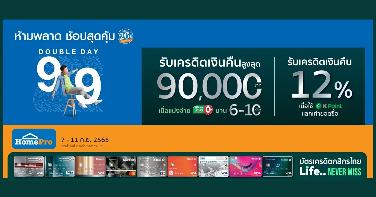 - สงวนสิทธิ์เฉพาะผู้ถือบัตรเครดิตกสิกรไทยที่ลงทะเบียนเข้าร่วมโครงการ ผ่าน SMS พิมพ์ HPC (เว้นวรรค) ตามด้วยหมายเลขบัตรเครดิต 12 หลักสุดท้าย ส่งมาที่ 4545888 และได้รับข้อความตอบกลับก่อนทำรายการ ตั้งแต่วันที่ 1 ส.ค. 65 – 31 ต.ค. 65 เท่านั้น