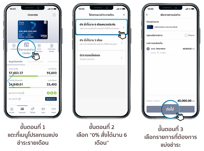 บริการใหม่! อภิสิทธิ์สมาชิกบัตรเครดิตกรุงศรีเฟิร์สช้อยส์ วีซ่า แพลทินัม และ เอ็กซ์ยู บัตรเครดิต ดิจิทัล เปลี่ยนยอดรูดบัตรเป็นยอดผ่อน 0% สั่งได้ 6 เดือน เมื่อรูดซื้อประกัน