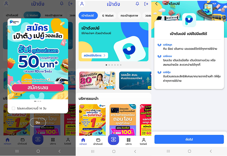 - กิจกรรมส่งเสริมการขายนี้ สำหรับลูกค้าที่ต้องการสมัครบัตร Play บนเป๋าตังเปย์ ในแอปพลิเคชันเป๋าตัง ภายในระยะเวลาส่งเสริมการขายเท่านั้น ลูกค้าจะได้รับการยกเว้นค่าธรรมเนียมการออกบัตรมูลค่า 50 บาท และค่าธรรมเนียมการจัดส่งบัตร มูลค่า 42 บาท มูลค่ารวม 92 บาท