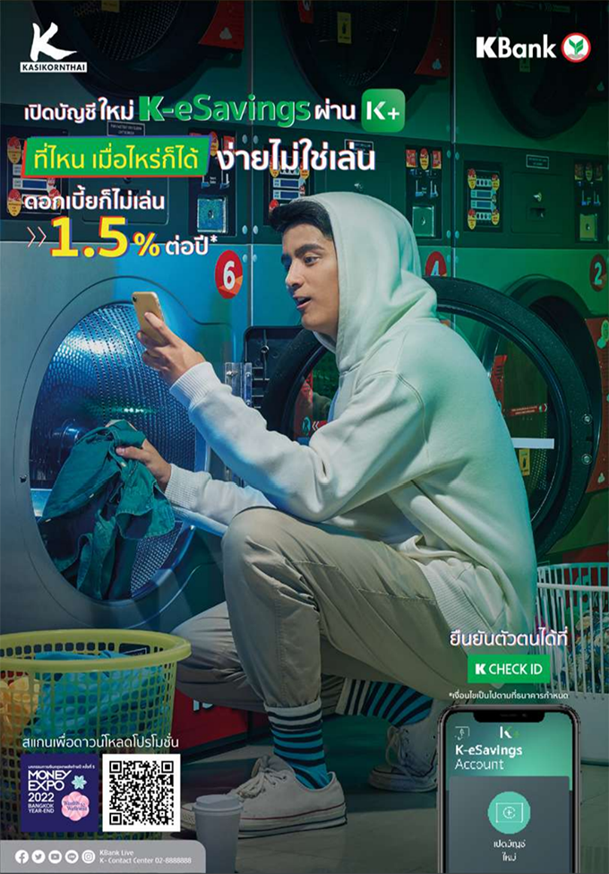 บัญชี K -eSavings : เปิดบัญชีผ่าน KPLUS เปิดบัญชีง่าย รับดอกเบี้ยสูง 1.50% ต่อปี*