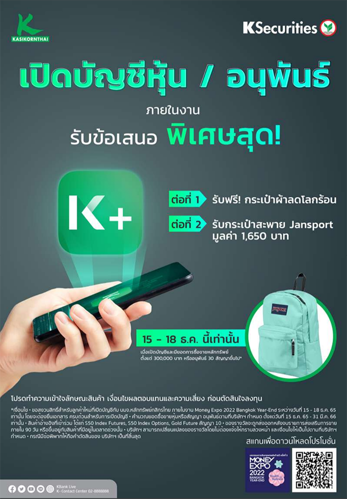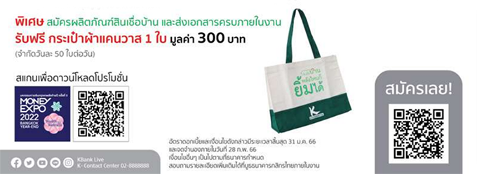 พบข้อเสนอสุดพิเศษที่บูธธนาคารกสิกรไทย ในงาน Money Expo 2022 Bangkok Year-End วันที่ 15 - 18 ธันวาคม 2565 ณ ฮอลล์ EH103-104 ศูนย์นิทรรศการและการประชุมไบเทค บางนา