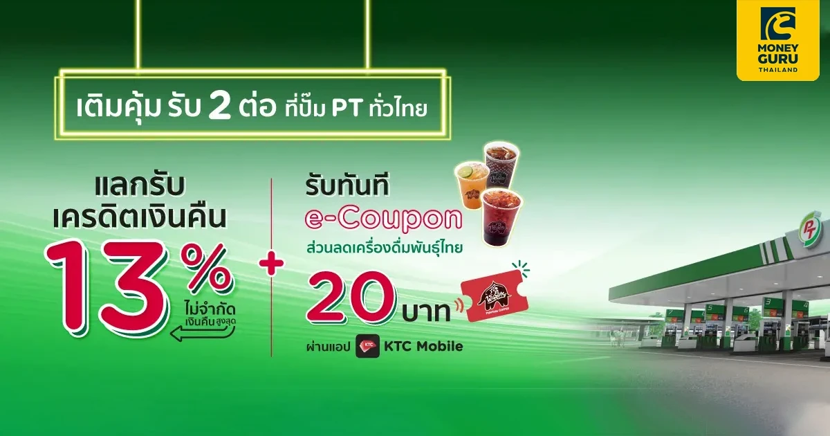 สิทธิพิเศษสำหรับลูกค้าบัตรเครดิตเคทีซี เติมคุ้ม...รับเบิ้ล 2 ต่อ ที่ปั๊ม PT