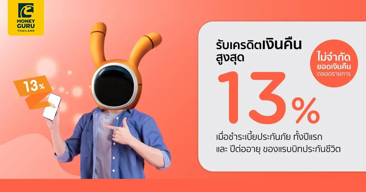 - พิเศษสำหรับสมาชิกบัตรเครดิตเคทีซี เมื่อชำระค่าเบี้ยประกันชีวิตปีแรกและปีต่ออายุของ บมจ. แรบบิท ประกันชีวิต ผ่านช่องทางตัวแทน ด้วยบัตรเครดิตเคทีซี รับเครดิตเงินคืนสูงสุด 13% ดังรายละเอียดต่อไปนี้