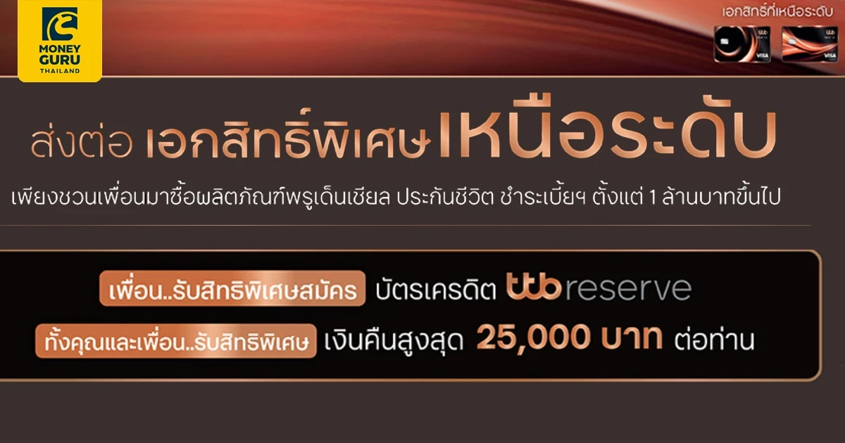 ต่อที่ 1 ผู้ถูกแนะนำ (เพื่อน) รับสิทธิพิเศษสมัครบัตรเครดิต ttb reserve