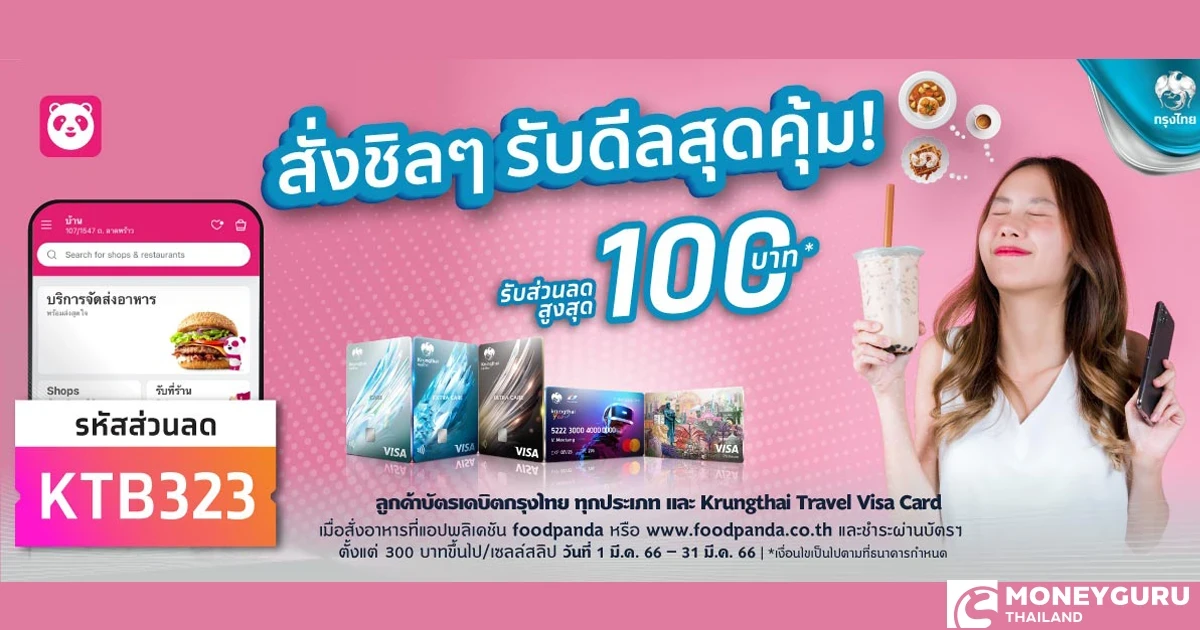 สั่งชิลๆ รับดีลสุดคุ้ม ที่ foodpanda ลูกค้าบัตรเดบิตกรุงไทยทุกประเภท เเละ Krungthai Travel Visa Card รับส่วนลดสูงสุด 100 บาท*