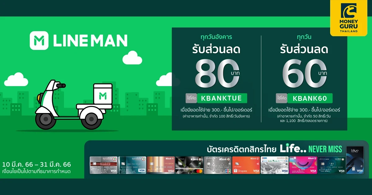 สิทธิพิเศษสำหรับบัตรเครดิตกสิกรไทย เมื่อสั่งอาหารที่ LINE MAN รับส่วนลดรวมสูงสุด 280 บาท*