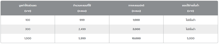 - ไม่จำกัดจำนวนครั้งในการแลกโค้ดส่วนลดต่อสมาชิก