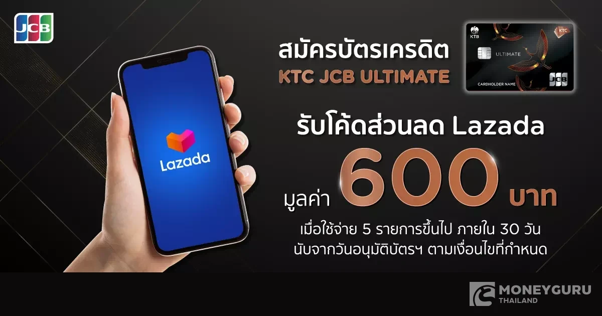 - โค้ดส่วนลด Lazada e-Coupon มูลค่า 600 บาท สามารถใช้ได้กับสินค้าที่ร่วมโปรโมชั่นเท่านั้นและจะต้องไม่มีสินค้าอื่นที่ไม่ร่วมโปรโมชั่นรวมอยู่ในคำสั่งซื้อเดียวกันนั้น โดยส่วนลดสำหรับสินค้าที่ร่วมโปรโมชั่นจะแสดง เมื่อเข้าสู่ขั้นตอนการชำระเงินด้วยบัตรเครดิต KTC JCB ULTIMATE เท่านั้น
