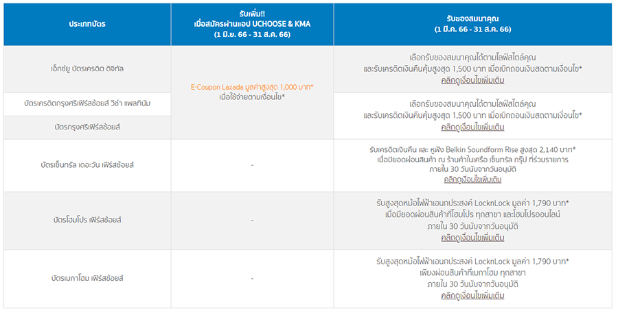 คุ้มไปอีก!! รับโปรโมชันสมัครบัตรใหม่ทั้งเครดิตเงินคืน และของสมนาคุณสำหรับแต่ละหน้าบัตร