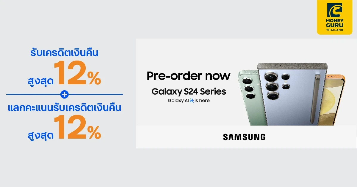 - รับเครดิตเงินคืน 12% สำหรับ Galaxy S24 Online Exclusive Color โดยสิทธิ์มีจำนวนทั้งสิ้น 300 สิทธิ์ ตลอดรายการส่งเสริมการขาย