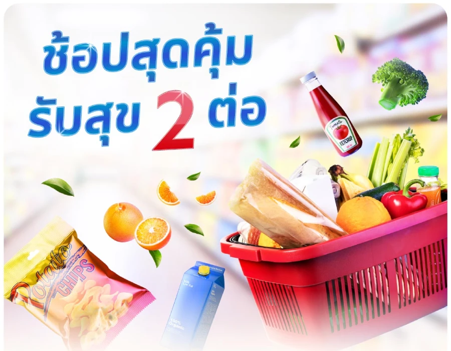- รายชื่อซูเปอร์มาร์เก็ตและไฮเปอร์มาร์เก็ตที่ร่วมรายการทุกสาขา สำหรับการซื้อหน้าร้าน Big C, Big C Mini, Food land, Gourmet Market, Max Valu, Max Valu Tanjai, Lotus’s, Lotus’s PRIVE, Lotus’ go fresh, Villa Market, Tang Hua Seng, Rimping, Tops, Tops Daily, Tops Foodhall, Tops Fine Food