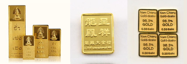 ทองคำแท่งในปัจจุบันจะมีราคาตั้งแต่ 1 สลึง, 2 สลึง, 1 บาท, 2 บาท, 5 บาท, 10 บาท, 1 กิโลกรัม และที่มีการทำขนาดเล็กๆ นี้ก็เพื่อใช้สำหรับการให้รางวัล หรือการเก็บสะสม ซึ่งร้านค้าทองมักจะทำทองคำที่น้ำหนักต่ำกว่า 5 บาท ให้มีรูปแบบที่สวยงาม น่าเก็บสะสม และจะเรียกเก็บ "ค่าบล็อค" ในการทำด้วยเช่นกัน ค่าบล็อค คือ การที่นำทองมาหลอมจนละลายแล้วเทลงไปในบล็อคให้ได้รูปร่างออกมาเป็นแท่งบล็อค ซึ่งแต่ละร้านก็จะคิดค่าบล็อคแตกต่างกันไป (ในที่นี้ขอยกตัวอย่างค่าบล็อคทองคำแท่งของร้านฮั่วเซ่งเฮง) ดังนี้