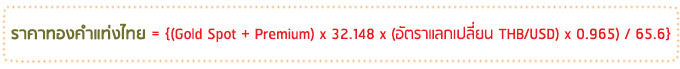 ตัวอย่างการคำนวณราคาทองสำหรับราคาในเมืองไทย