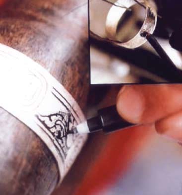 - สลักลายด้วยสิ่วสลักให้พื้นของลายลึกต่ำลงไป