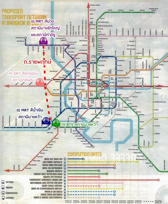 (ค) สถานีตลิ่งชัน รถไฟฟ้าของการรถไฟแห่งประเทศไทยสายสีแดงอ่อนช่วงบางซื่อ-ตลิ่งชัน (คาดว่าจะเปิดบริการปี 2562)
