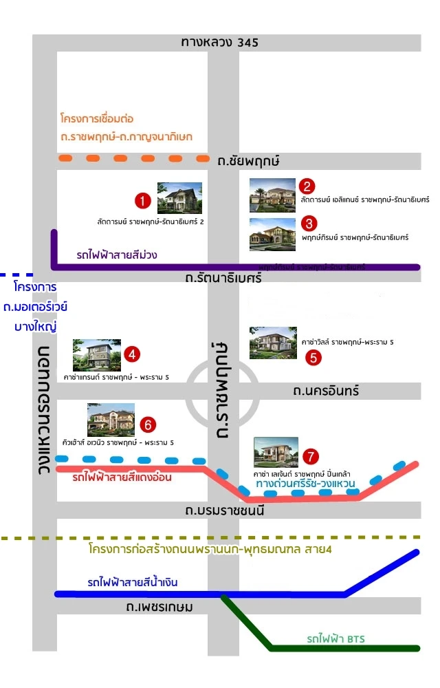 - รถไฟฟ้า 5 สายวิ่งผ่านบริเวณถนนราชพฤกษ์