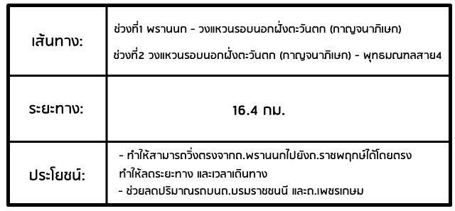 - โครงการขยายถนนราชพฤกษ์ให้กว้างขึ้น (จาก 6 ช่องจราจรเป็น 10)