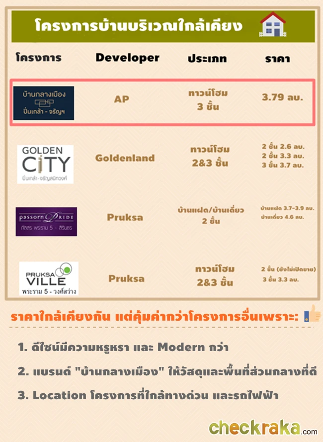 Brand "บ้านกลางเมือง" กับความคุ้มค่าที่ได้เมื่อเทียบกับโครงการใกล้เคียง